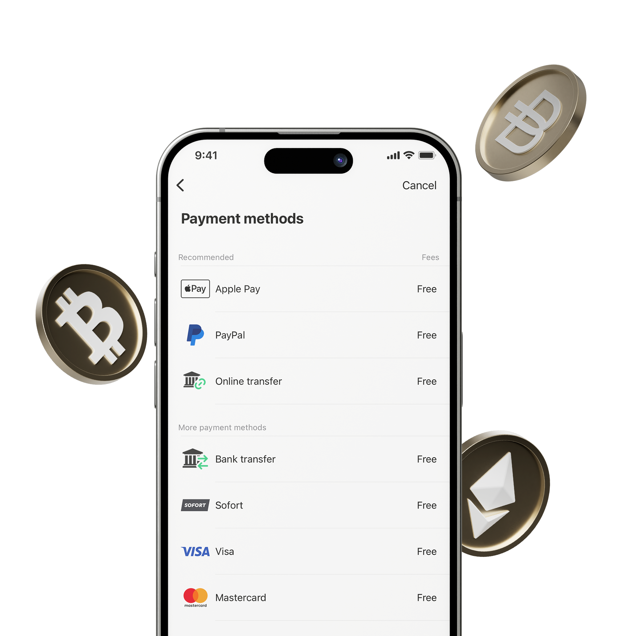 Funds secured in offline wallets. Fully compliant with European data, IT and money laundering security standards